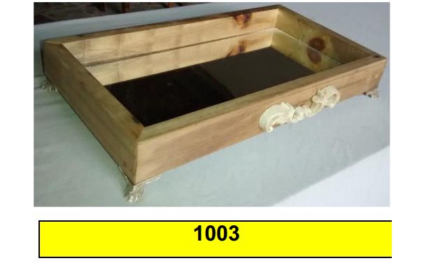 Bandeja no estilo colonial com detalhes em resina, fundo espelhado e acabamento envelhecido.