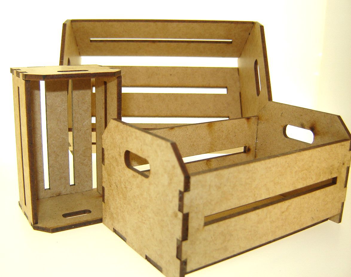 Trio de caixote de feira em miniatura para arranjos e enfeites de centro de mesa ou mesa de festa.